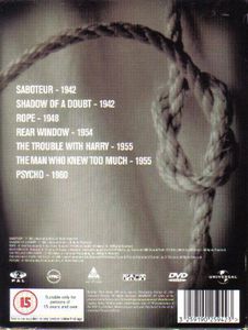 Deze box bevat zeven films van 'de master of suspense', een vervolgbox met nog eens zeven titels verschijnt zeer binnenkort. De eerste box bevat een aantal bekende (The Trouble with Harry, Saboteur en The Man Who Knew too Much), minder bekende (Shadow of a Doubt) en onvermijdelijke meesterwerken als Rear Window, Rope en Psycho. Die laatste staat officieel te boek als 'bonusdisc', wat helaas tot gevolg heeft dat het schijfje het zonder extra's moet stellen. De overige titels, keurig opgepoetst en opgeschoond, zijn wel voorzien van hele boeiende making-of's, waarin naast de (nog levende) hoofdrolspelers ook dochter Patricia Hitchcock en regisseur en filmkenner Peter Bogdanovich hun licht over het fenomeen laten schijnen. Een must.